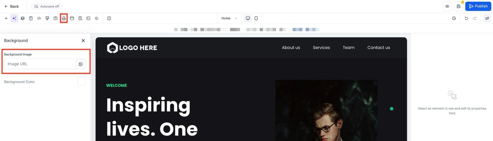 Section titled “Background”Here, you can add an image or color as your background. Note that this change will apply to all pages, not just a section or row.