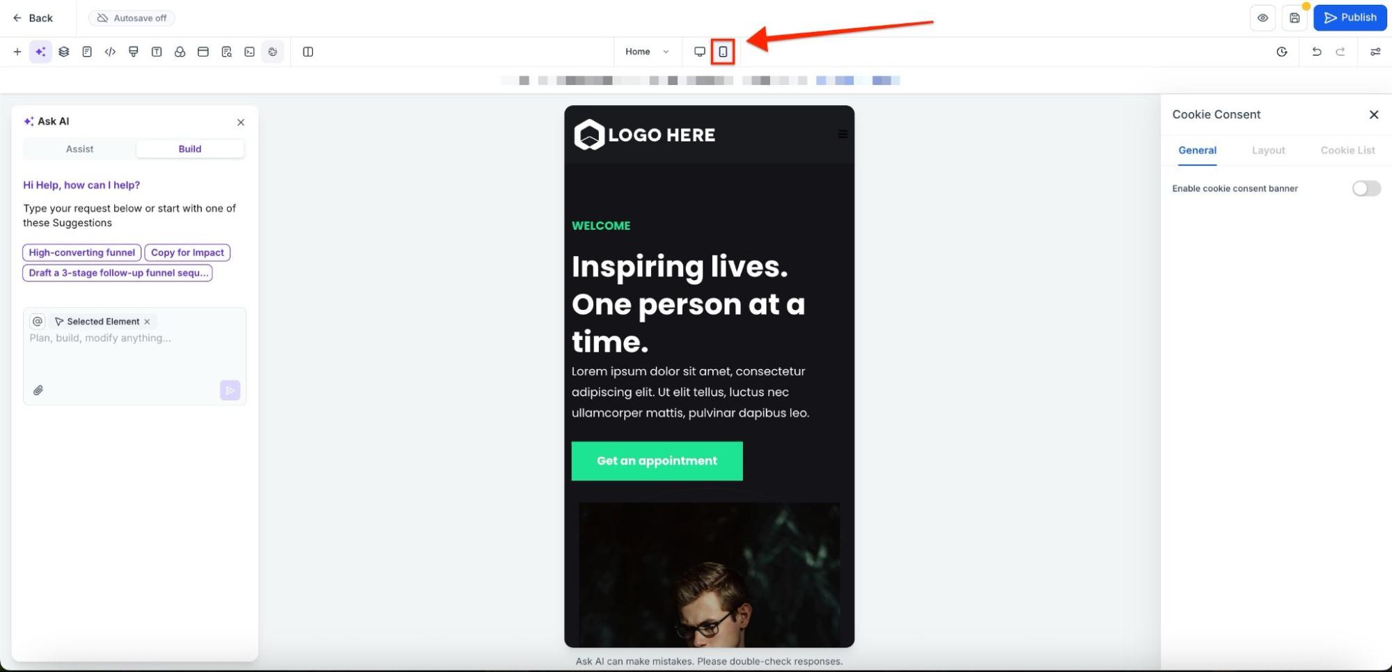 Section titled “Mobile Icon”This feature lets you see your page as if you are visiting it from a mobile device. You can make changes according to the mobile view.