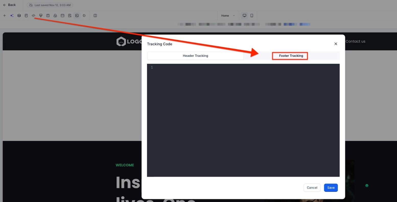 - Click on the Tracking Code option on the top left.