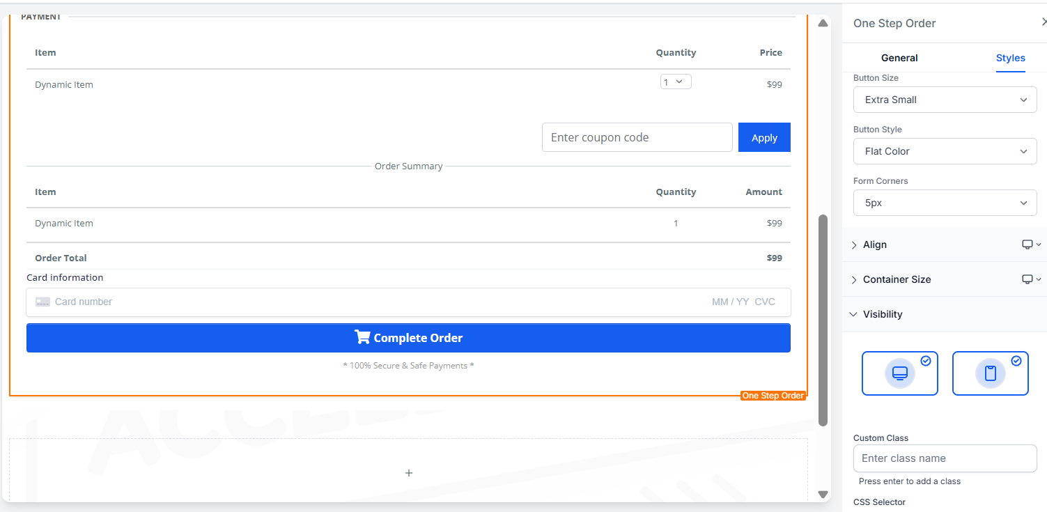 NOTE: “Dynamic Item” and “Price”: In Step #2 of the order form, where it says “Dynamic Item” and “Price”, these are just placeholders, so long as you’ve followed Step 1 and added the product before adding the form into the funnel builder. In preview mode, this will display your product and price.