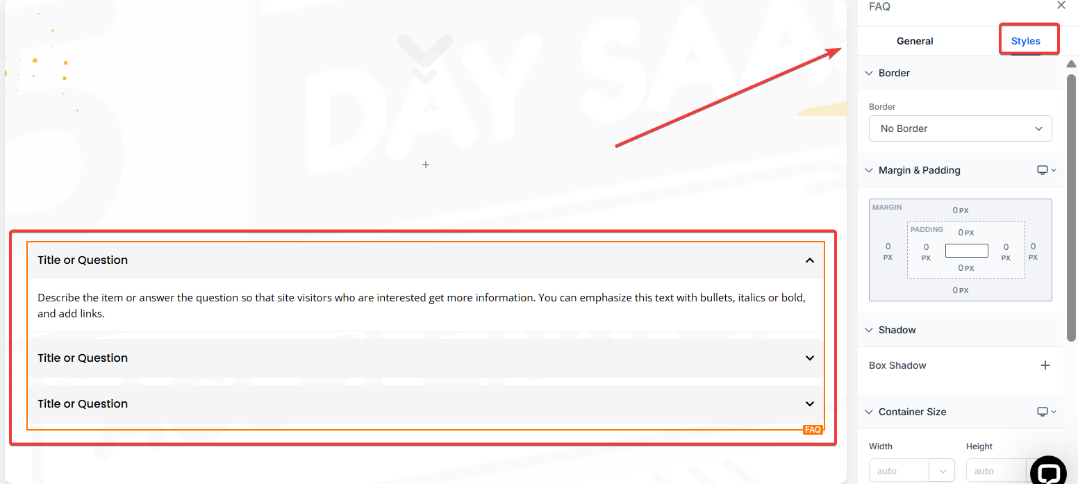 5- Style the FAQ Section Use the available design tools to adjust the look of the FAQ section. You can modify fonts, colors, and spacing to match the overall style of your funnel or website.