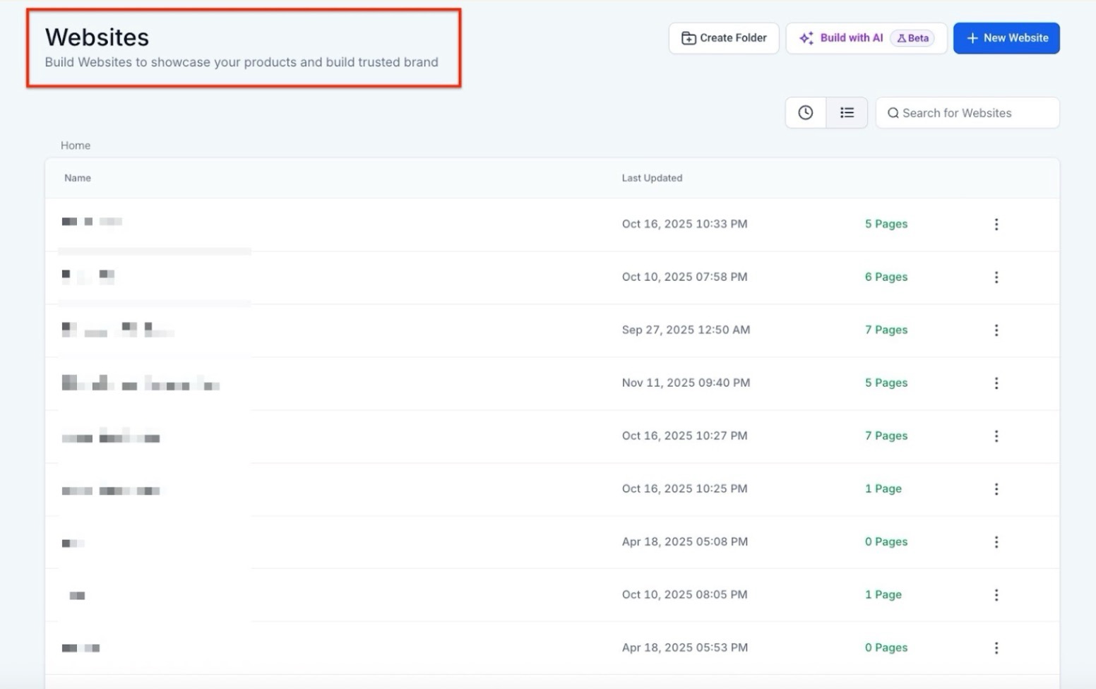 Section titled “Step 1: Navigation”1- Login into your account, go to Sites, and choose any website by clicking on the Website tab.