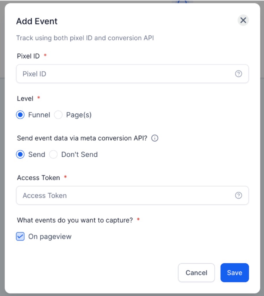 - Flexible Tracking Options: Choose whether you want Funnel-level tracking or Page-specific tracking. The former monitors events across the entire customer journey, while the latter tracks events on specific pages.