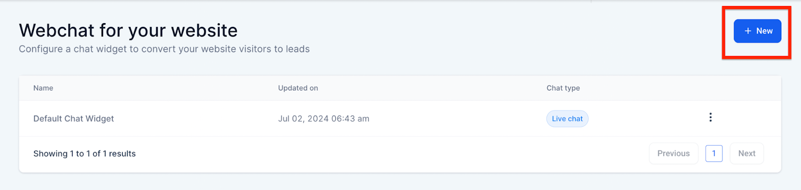 - Click on Create New Chat Widget.