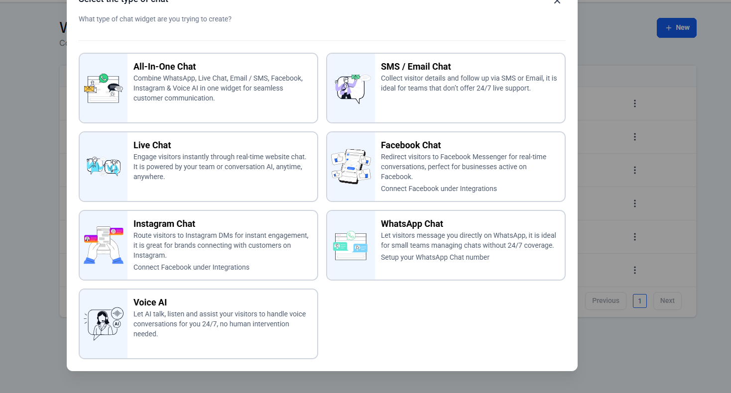 - Note: You can use the All in One chat option to eliminate the need for multiple widgets and manage all interactions in one place.