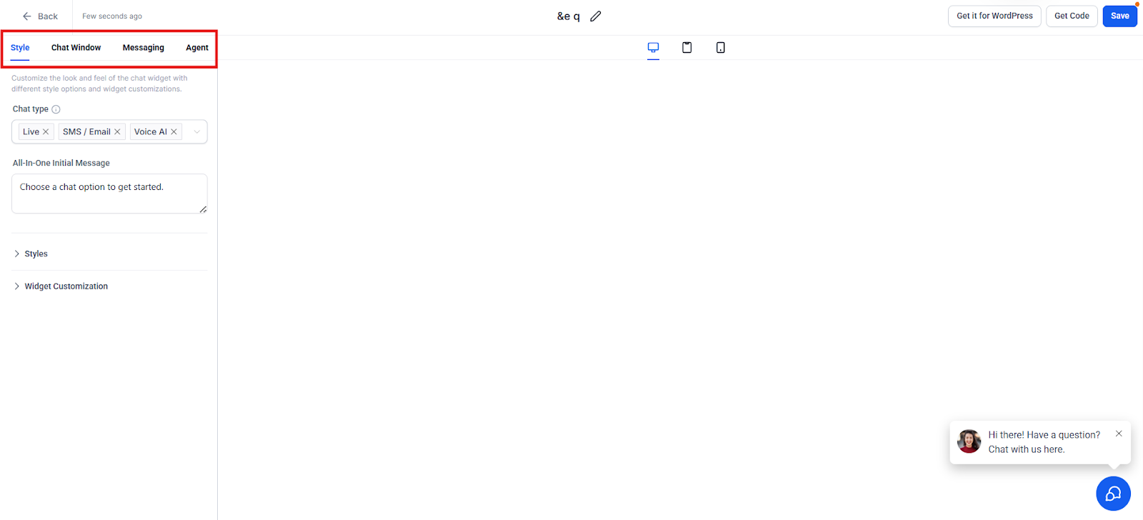 Answer: Yes. You can use the All-in-One Chat option. This eliminates the need for multiple separate widgets by allowing you to manage all types of interactions in one central place.