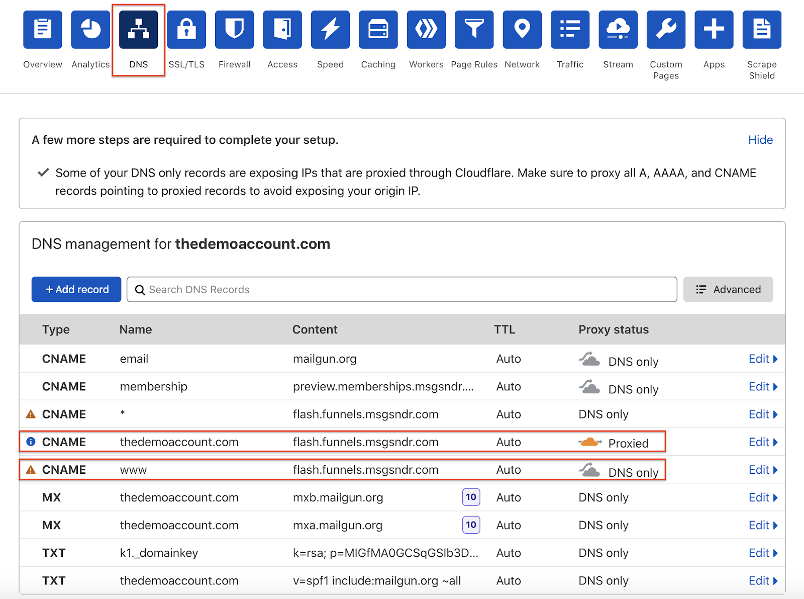 - Be sure you have these 2 CNAME records: the root domain, and www.