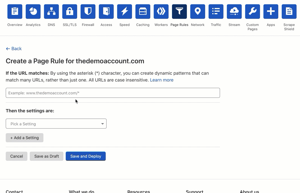 Section titled “Step 2: Set up a permanent redirect page rule.”- Navigate to Page Rules.