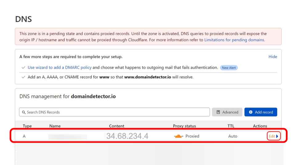 Section titled “Step 1: Confirm your DNS records.”- Log in to your Cloudflare account.