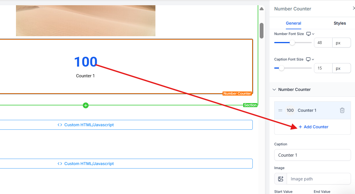 Number Counter Element in Funnels & Websites
