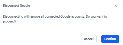 - To disconnect an account, click the ‘Connected’ button and confirm deletion.