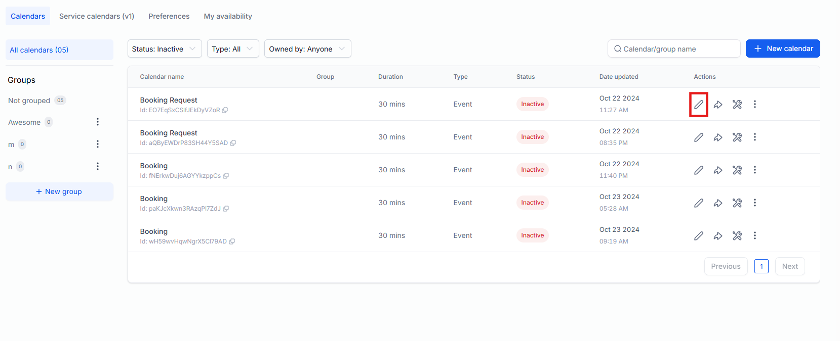 - Click on the pencil icon to open the edit window, and scroll down to find Calendar Configuration.