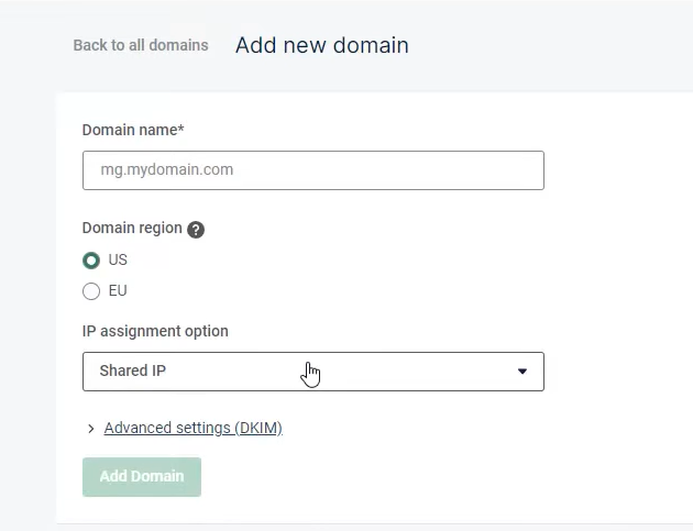 Section titled “Step 3: Add Your Domain in Mailgun”- Navigate to the domain settings in Mailgun.