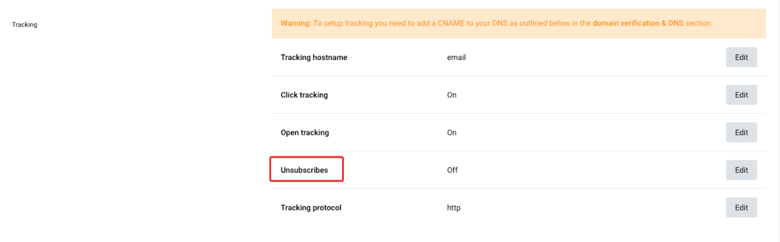 3- Scroll down to the Unsubscribe section and click Edit. Toggle the Unsubscribe feature on or off as needed.