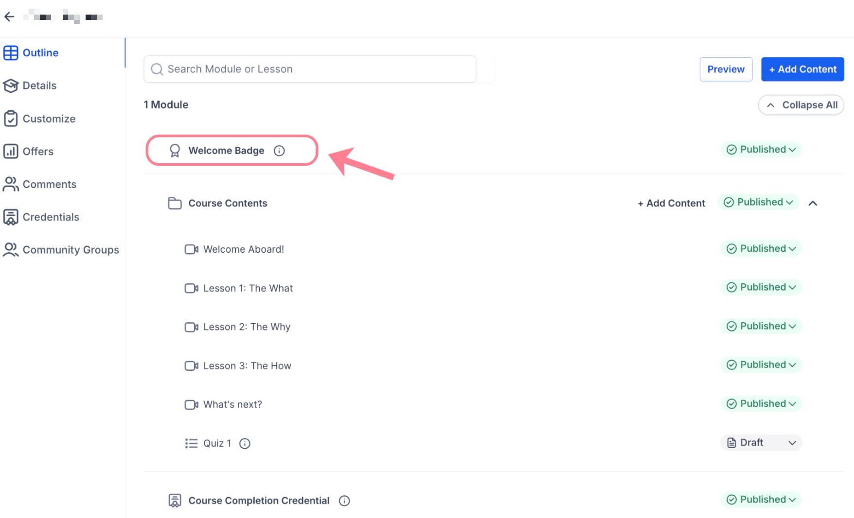 Automatic Welcome Badges: To ensure learners feel recognized from the moment they join, every new course includes a pre-attached Welcome Badge.