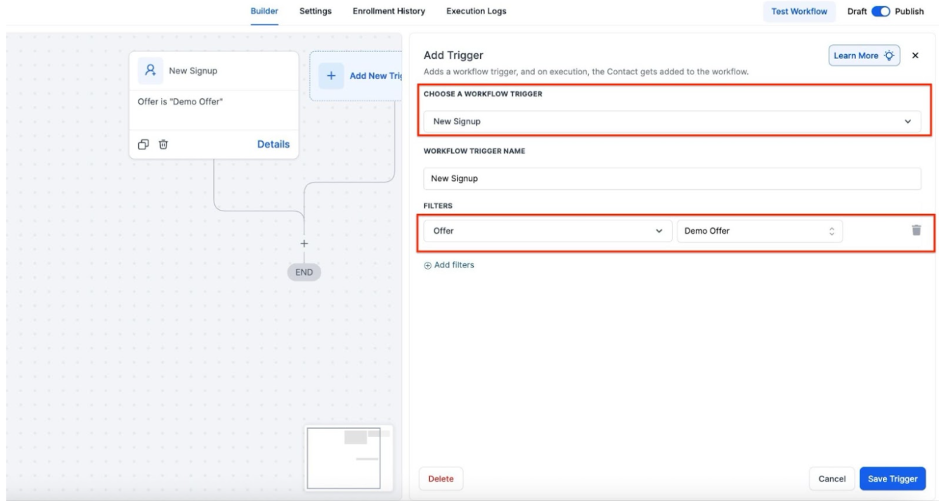 Answer: The ‘Membership New Signup’ trigger is used when the action is performed by the contact, such as filling out a form or making a purchase. In contrast, the ‘Offer Access Granted’ trigger is used when you or a workflow grants the offer after the first time.