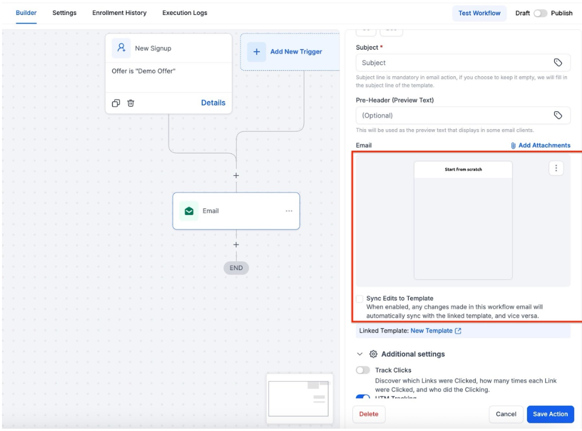 Section titled “Workflow 2:”- Add the New Signup trigger to the second workflow