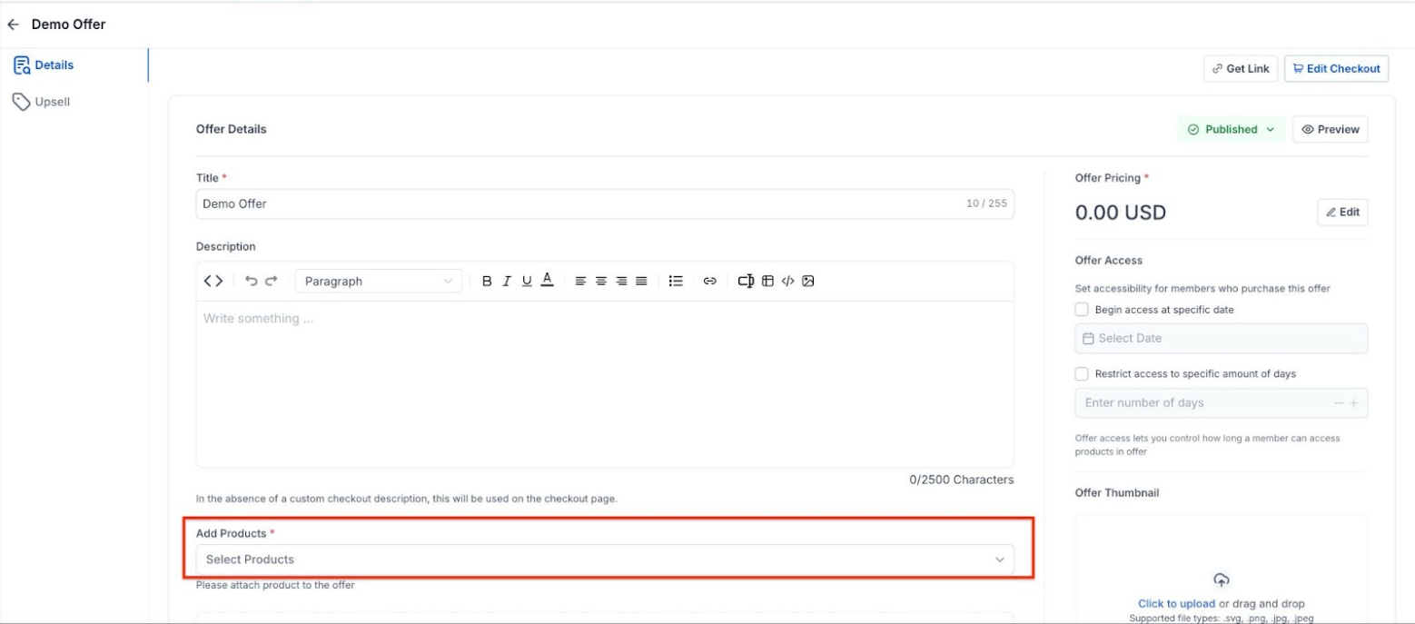 Create a new offer and select the product. (You can follow our other tutorials if you need help setting up a new offer).
