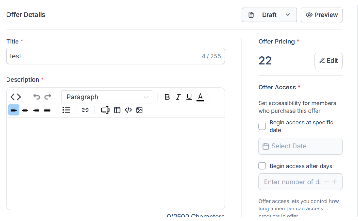 Edit your offer and find the “Allow checkouts to access coupons” section under the Price category. Flip the switch to activate the coupon option for that offer.