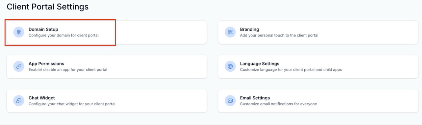 Open the Courses dropdown, select Settings, and then choose Domain Setup.