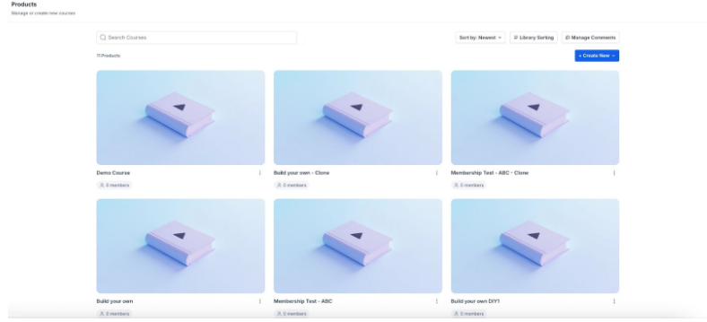 - Navigate to Memberships > Courses > From the dropdown select the Products tab.