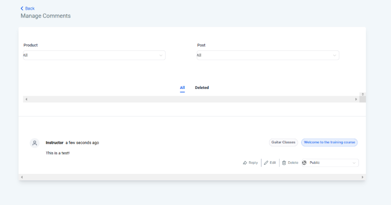 - To delete a comment, navigate to Products > Manage Comments > select the comment you wish to delete > click Delete.