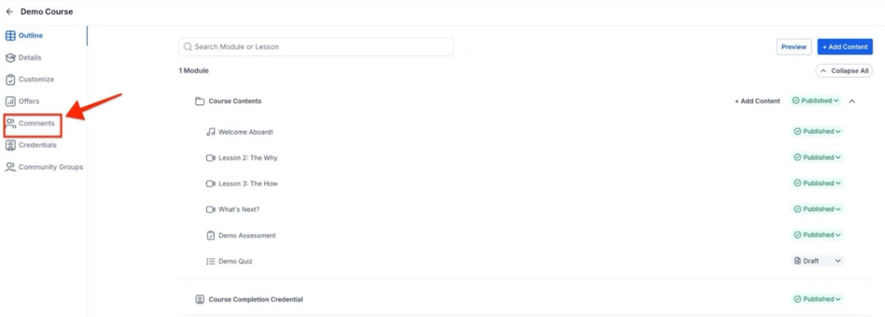 By adding comments to your membership section, you can create and foster an engaged learning environment. Follow along to learn how to manage your membership comments.