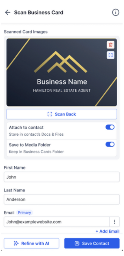 - If something looks off, tap “Refine with AI” to automatically enhance the scan and update the fields.