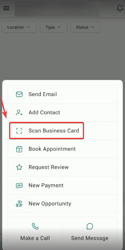 Section titled “How to Use the AI Business Card Scanner”Open the Mobile AppTap the + Icon in the bottom right corner of the screen → Scan Business Card