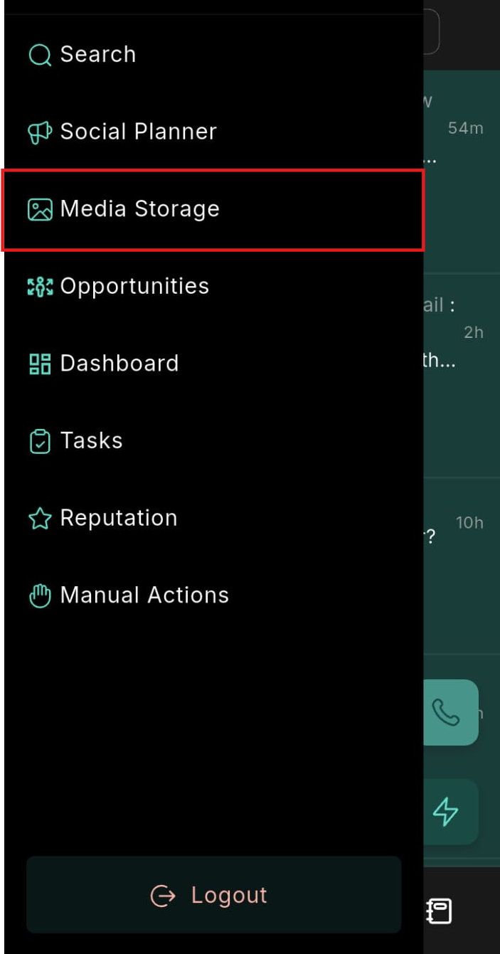 From the menu, tap on Media Storage to access all your media storage and management options.