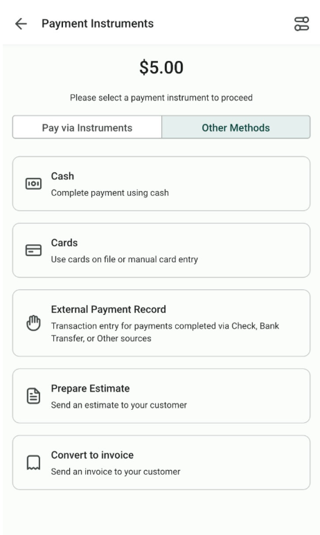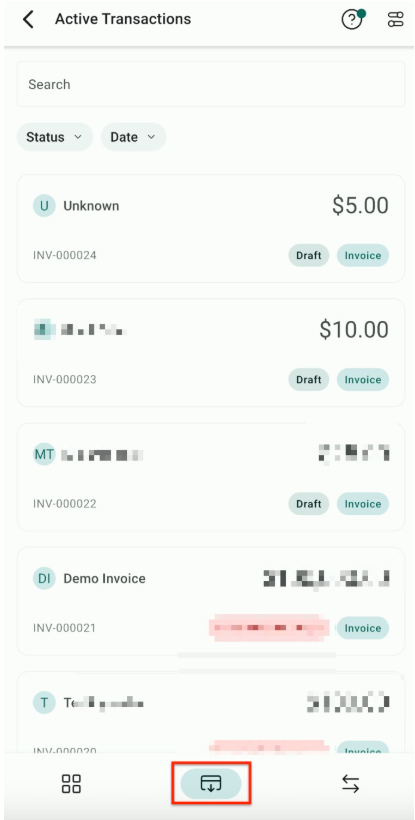 Users can access and manage all due or overdue invoices in one place. Users can quickly view, edit, and collect payments for invoices, estimates, contracts, and appointment-based invoices. To use this, log in to the mobile app, go to the POS section, open the Active Transactions menu, and select the invoice you wish to manage. From there, you can record payments using various payment methods like cards, cash, or payment readers.