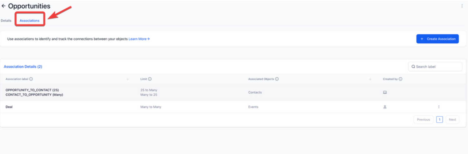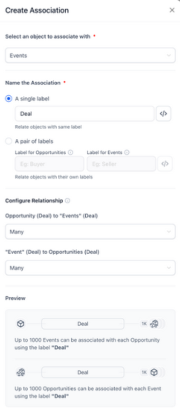 This enables flexible linking between Custom Objects and Opportunities, allowing you to define one-to-one, one-to-many, many-to-one, or many-to-many relationships with clear, customizable labels.To use it, open an Opportunity record, go to the Associations panel