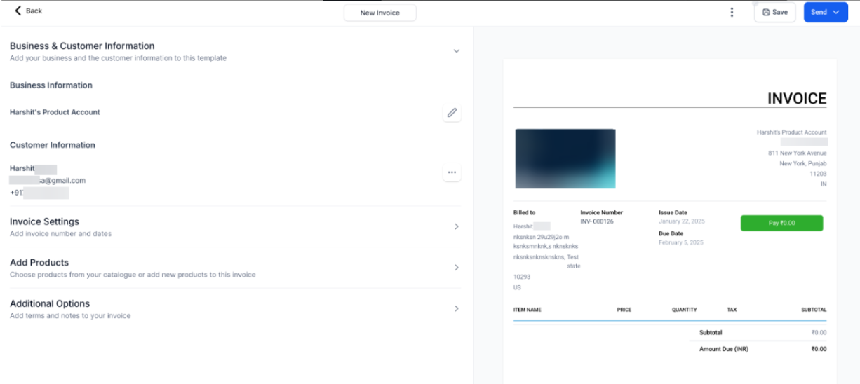 - Click on Actions -> Create Estimate/Invoice.