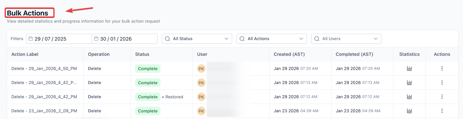 Answer: Yes. You can navigate to the “Bulk Actions” page, find the specific deletion task, and click “Restore.” However, please note that if you have already deleted the contact associated with those opportunities, they cannot be restored.