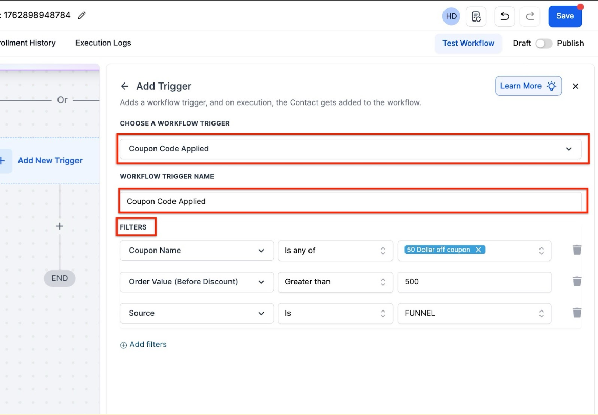 How to Set Up Coupon Triggers in Workflows: