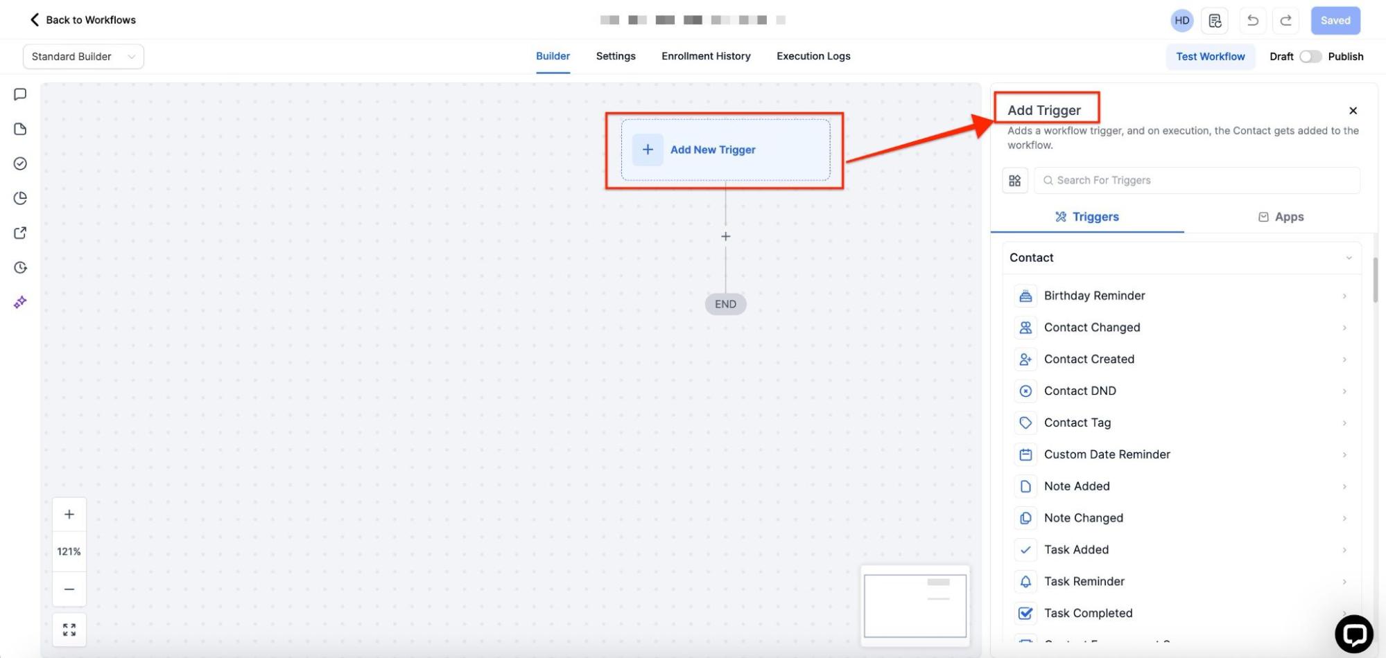 - Click Create New Workflow to begin setting up your triggers.