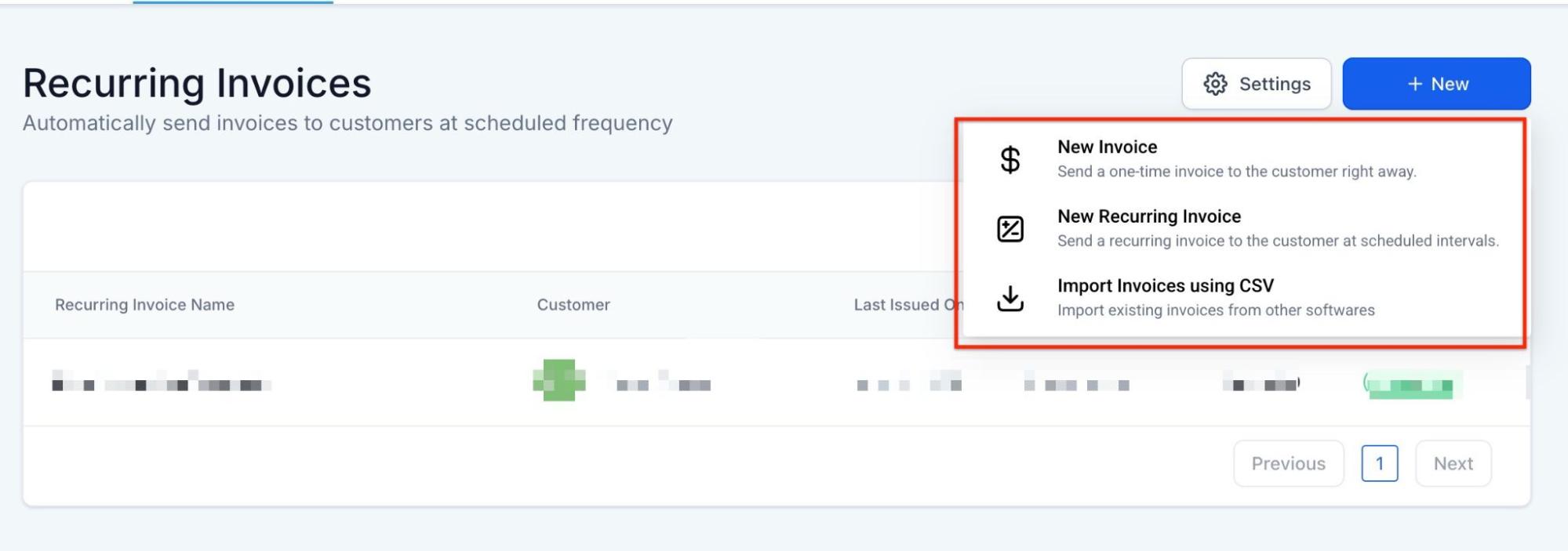 Section titled “FAQs for Recurring Invoices”Question: How can I create a new recurring invoice? Answer: Navigate to Payments > Invoices & Estimates > Select Recurring Invoices from the dropdown. Click + New and choose New Recurring Invoice to start building your invoice.