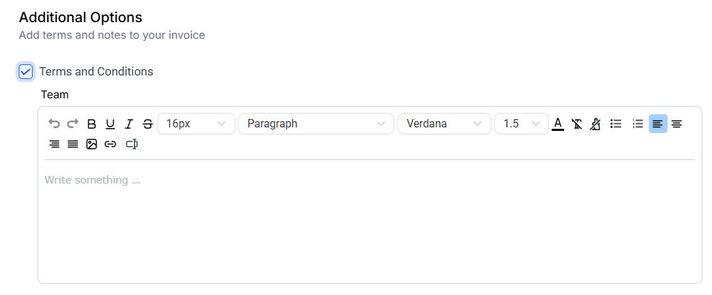 Additionally, Users can attach up to 10 files, with a total size limit of 20MB, to estimates, invoices, and recurring invoices. Attachments offer flexibility for users to include important documents like terms, specifications, or visuals directly with estimates or invoices.
