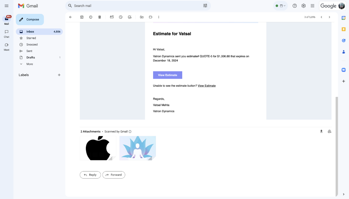 Note: Attachments are sent only with the initial email when the estimate or invoice is first sent, not with the ones that are subsequently scheduled.
