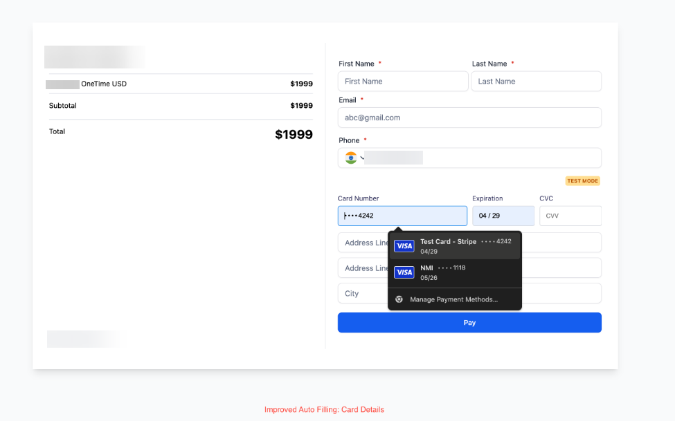 Section titled “Autofilling for Enhanced Efficiency”- Autofilling of card and contact information is supported by various auto-filling extensions and browsers, ensuring accuracy and speed in payment processing.