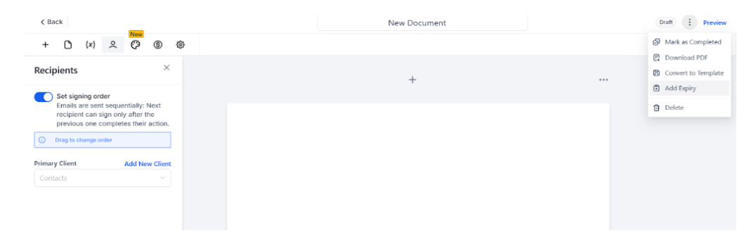 - Expiration SettingsAutomatically set documents to expire if they are not completed.