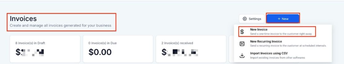 Create an Invoice: Navigate to your invoicing section and create a new invoice.