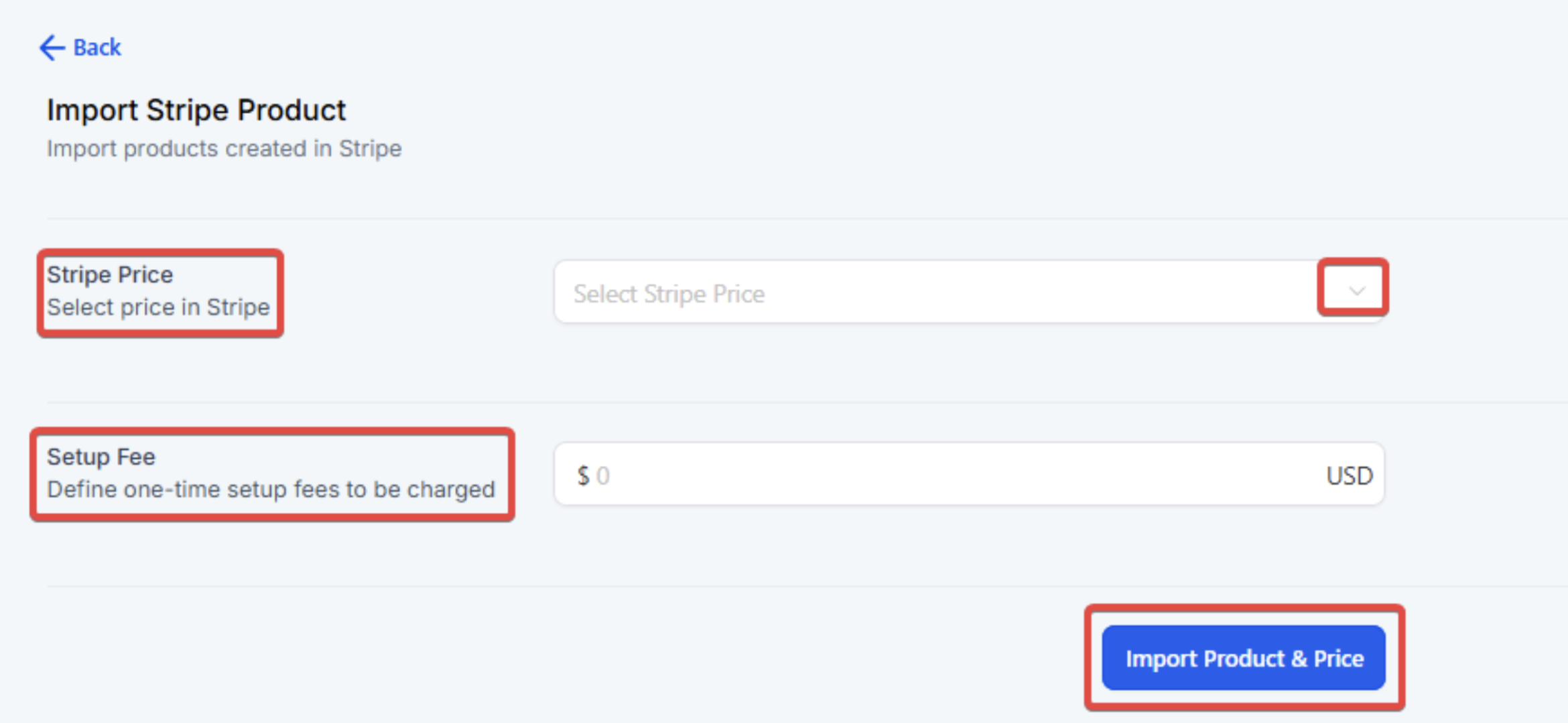 From the dropdown, select the product you wish to import and click “Import Product & Price”.