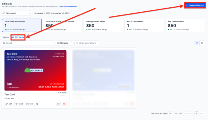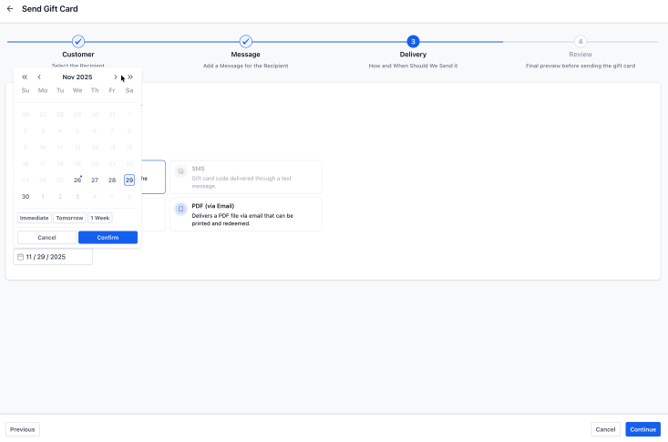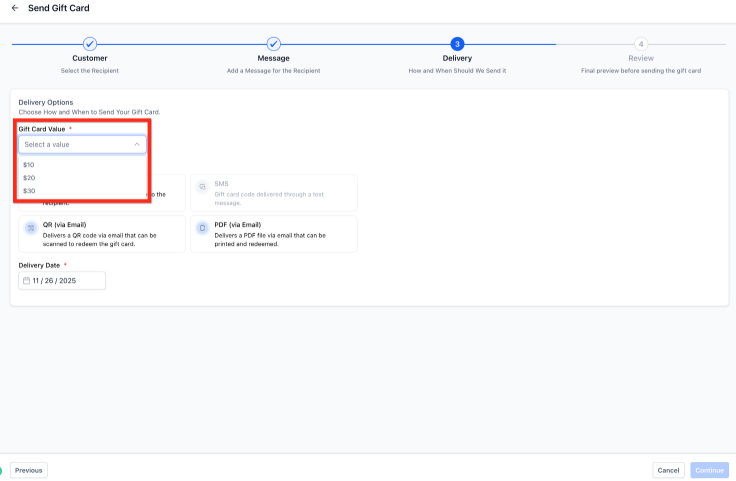 - One-to-One Issuing: Instantly generate and send a unique gift card to a specific recipient or schedule it for a meaningful future date.