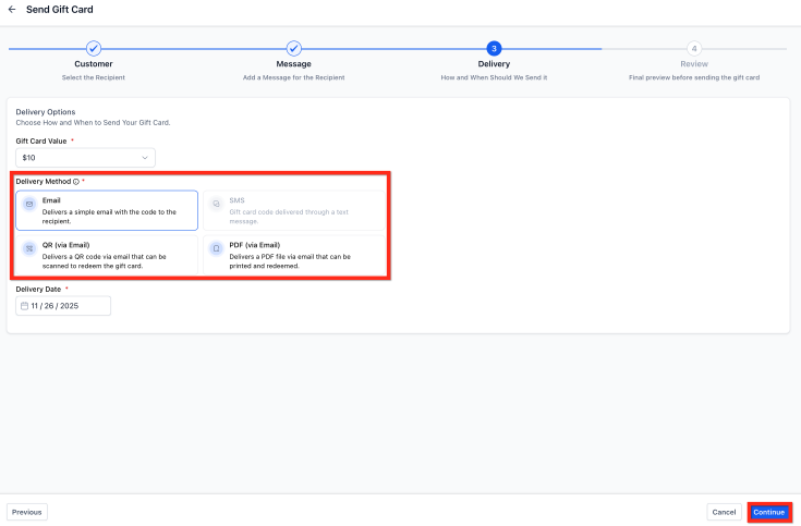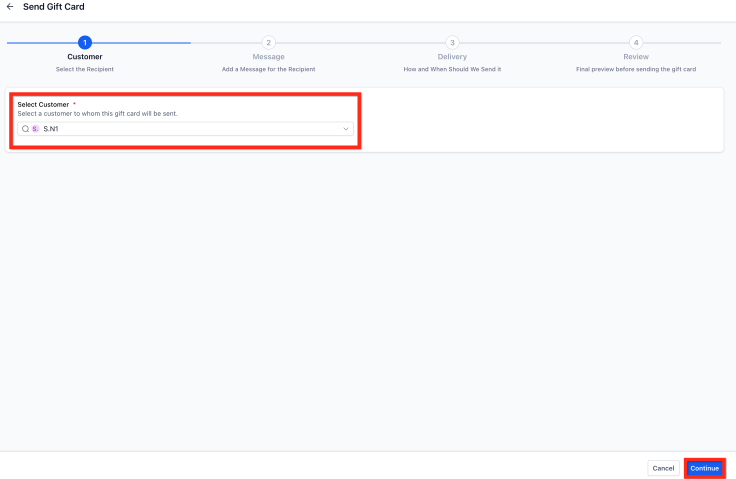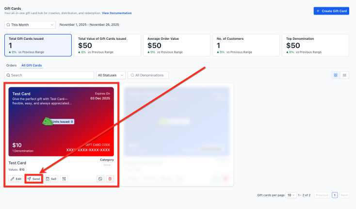 Section titled “How to Send a Gift Card”Follow these steps to issue a gift card directly to a contact within your :