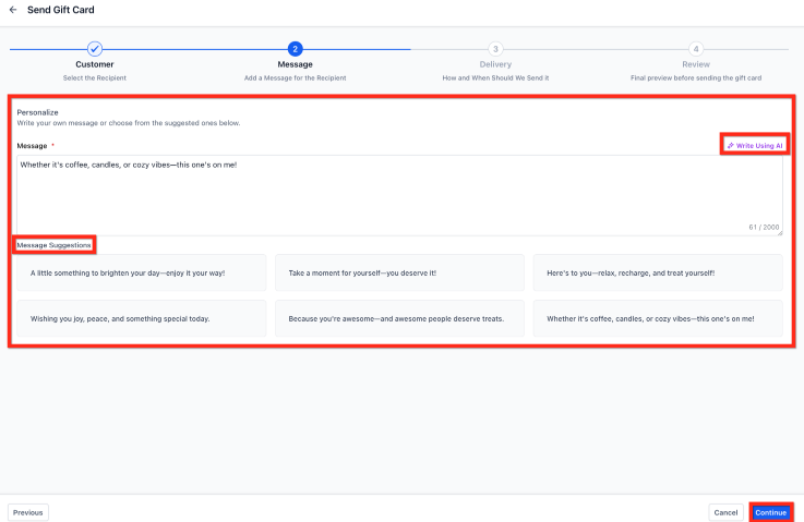 - AI-Assisted Messaging: When sending cards for service recovery, use the “Write with AI” feature to ensure the tone is empathetic and professional, which can help turn a frustrated customer into a loyal advocate.