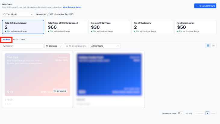 Payments → Gift Cards → Gift Card Orders