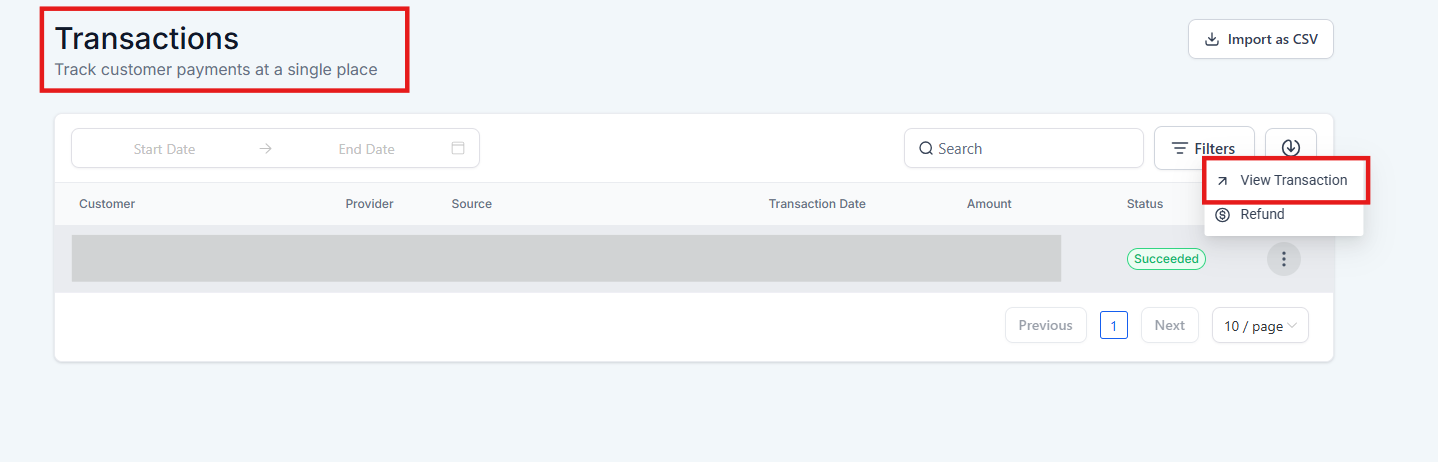 - Navigate to Payments > Transactions