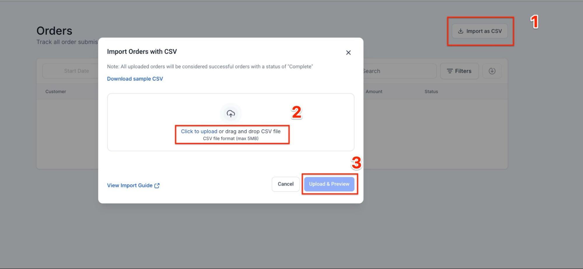 **1. Prepare Your CSV Files:**Ensure your transactions and orders are properly formatted in CSV files. Each file should include relevant details such as customer information, transaction dates, amounts, and product details.