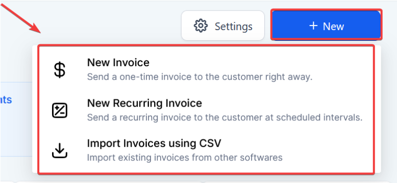 - Go to the Invoices tab. Click on Create New Invoice or Create New Recurring Invoice.